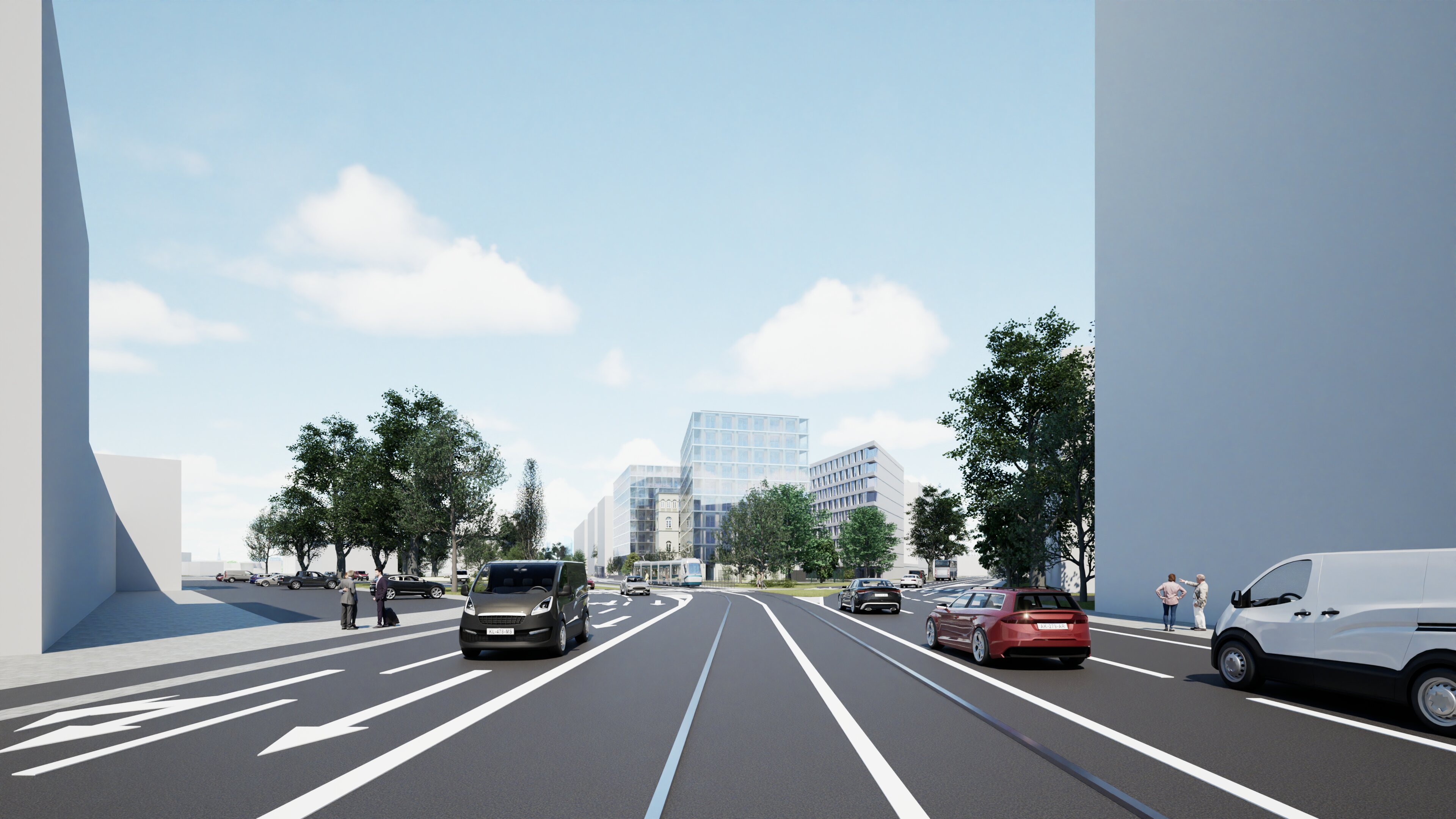- ✔ Zaplanowano sekwencję widoków z poziomu pieszego i komunikacji miejskiej